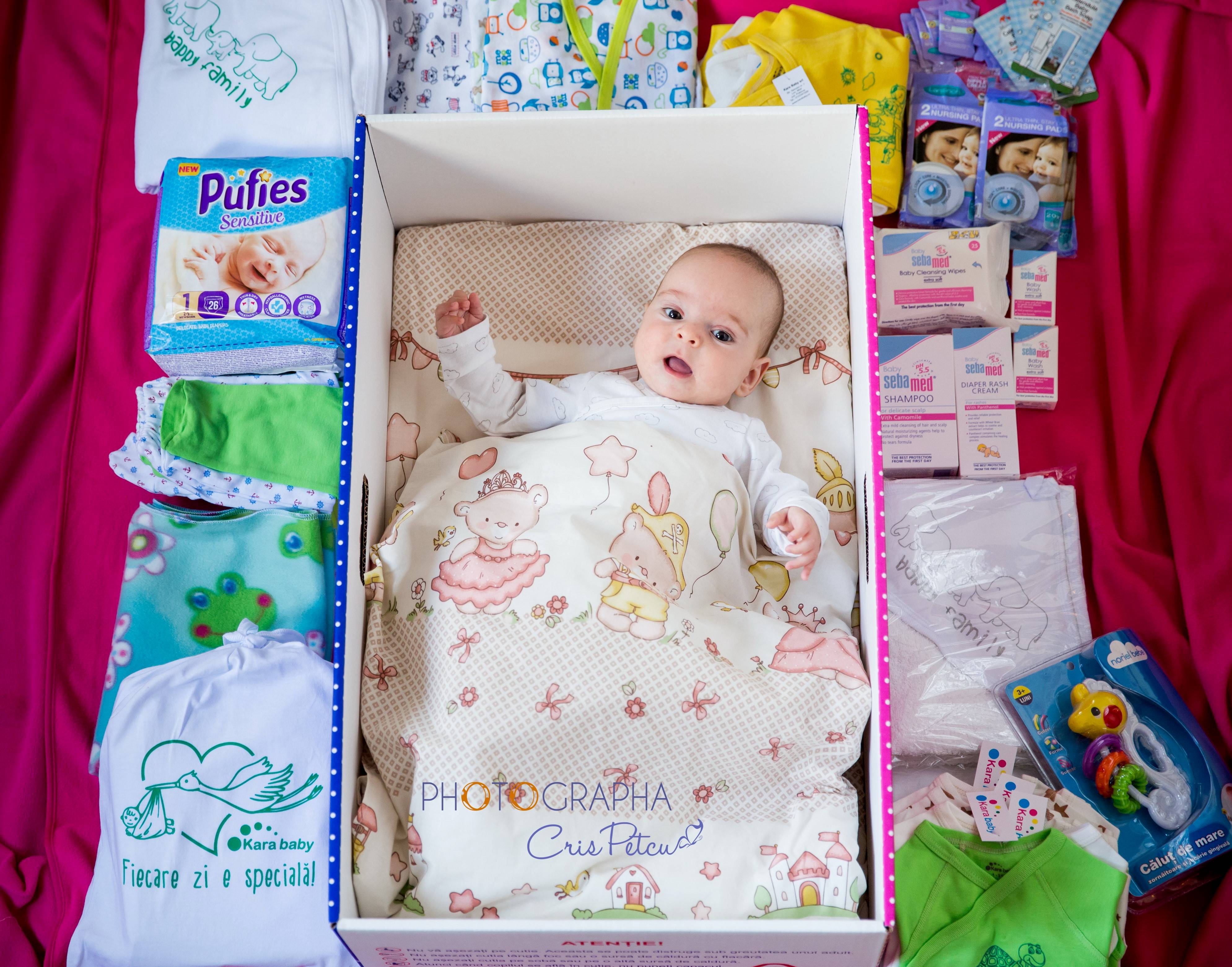 În România, CUTIA Bebelușului este realizată de Asociația SAMAS în parteneriat cu Rossmann România – producătorul acestei cutii și este dotată cu:
