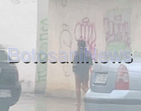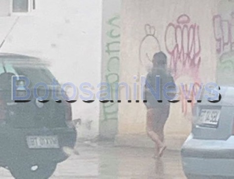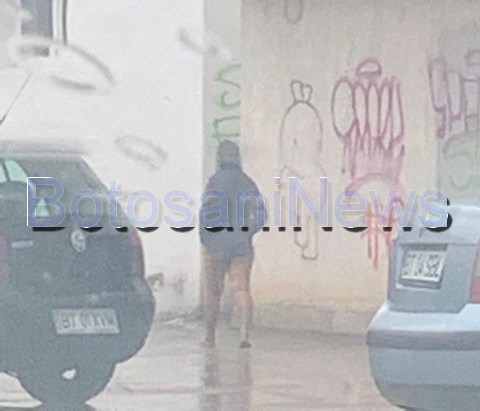FOTO O femeie aproape goală surprinsă la plimbare pe străzile din Botoșani, prin ploaie. Nici măcar lenjerie nu avea