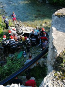 Mașina a căzut de pe pod în râul Gilort, de la aproximativ cinci metri înălțime. La fața locului s-au deplasat 2 autospeciale pentru descarcerare, o ambarcațiune de salvare și un echipaj SMURD din cadrul ISU Gorj precum și 3 ambulanțe din cadrul SAJ Gorj.