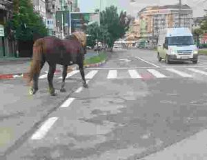 Un cal fără stăpân a fost văzut, marți dimineață, plimbându-se nestingherit pe străzile din municipiul Botoșani, printre mașini.