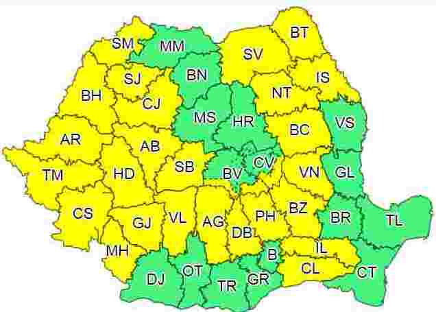 „În intervalul menționat în Banat, Crișana, vestul și sud-vestul Transilvaniei, nordul Olteniei, vestul și nordul Moldovei, nordul și estul Munteniei, precum și în zonele de munte, vor fi averse ce vor avea și caracter torențial, descărcări electrice, intensificări ale vântului, vijelii și condiții de grindină. Cantitățile de apă vor depăși local 20…25 l/mp și pe arii restrânse 35…50 l/mp”, spun meoeorologii.