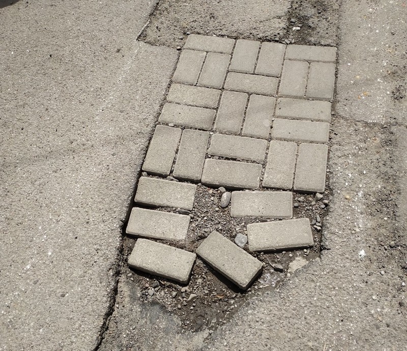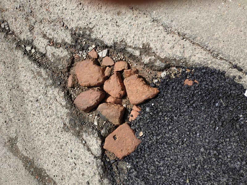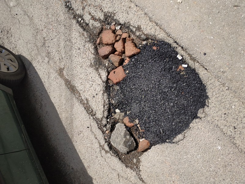1. Mai neispravitilor nu vedeți ca acolo e doar un petic provizoriu? Tocmai ca era gaura prea mare și mai aveau o roaba de asfalt și au pus-o acolo sa nu va mai rupeți mașinile pana luni. Cand probabil vor reveni în zona sa finalizeze lucrările.