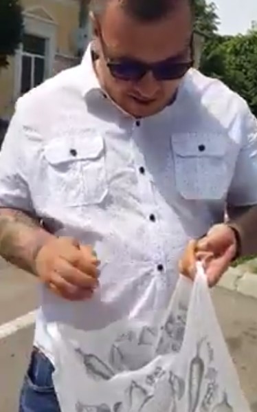 „Deputatul Mitralieră, ia-ţi oloiul, ia-ţi zaharul şi făina, măi Smântână, şi du-te din ţara asta… Ţi le las aici, măi, deputatul Mitralieră, din campanie. Luaţi voi pesediştilor, uitaţi cu punga specifică M… PSD, luaţi şi duceţi-vă din ţară”, susține botoșăneanul.
