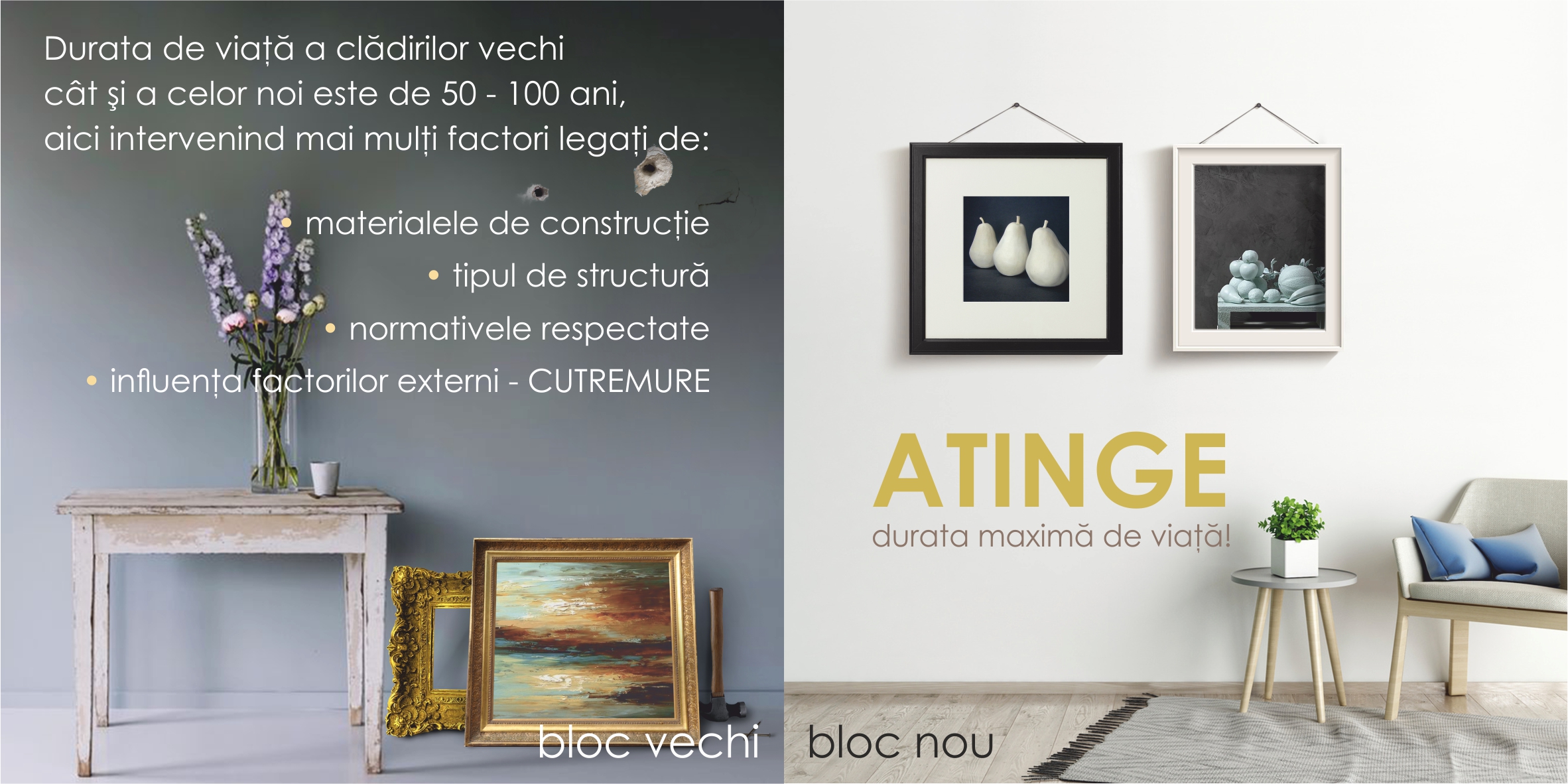 Durata de viață a clădirilor vechi cât și a celor noi este de 50-100 ani, aici intervenind mai mulți factori legați de materialele de construcție, tipul de structură, normativele respectate, influența factorilor externi – CUTREMURE.