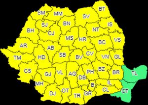 În Moldova, nordul și vestul Munteniei precum și în Oltenia, vor mai fi perioade cu instabilitate atmosferică temporar accentuată. Aceasta se va manifesta prin averse torențiale, descărcări electrice, intensificări ale vântului, vijelii și posibil grindină. Cantitățile de apă vor depăși, în intervale scurte de timp sau prin acumulare 25 l/mp și izolat 50 l/mp.