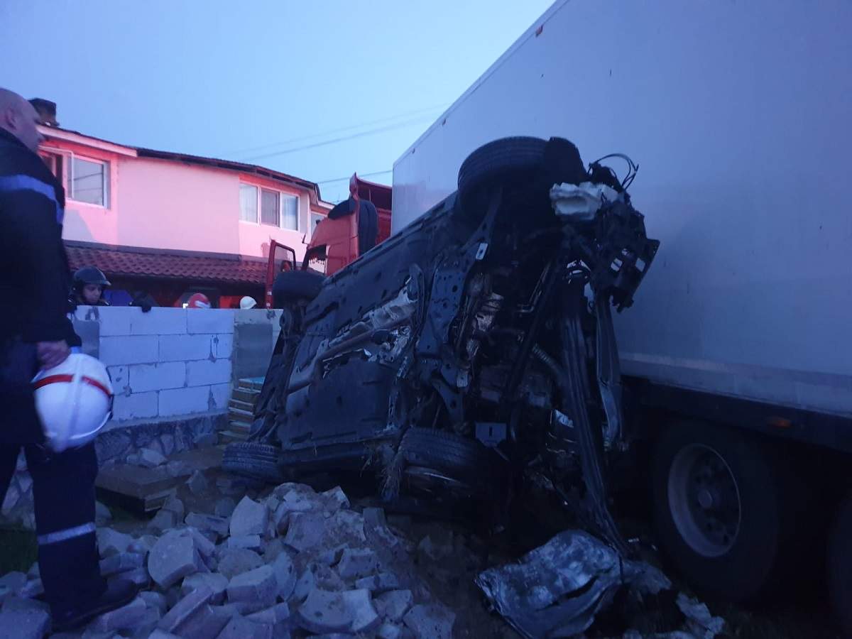 Un grav accident rutier s-a petrecut luni dimineață, la Răcăciuni, în județul Bacău. Un TIR a intrat pe contrasens şi a strivitun autoturism de gardul unei case.