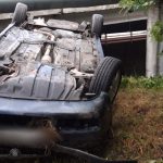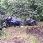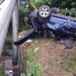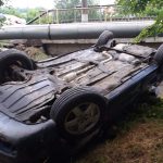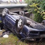 Două persoane au ajuns la spital, miercuri dimineață, după ce au intrat cu mașina într-un stâlp, apoi s-au răsturnat.