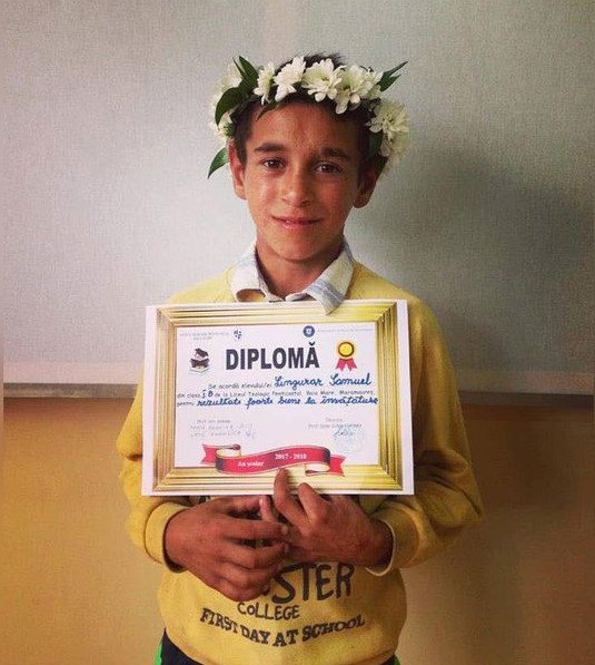 Destinul lui Samuel s-a schimbat radical după ce a fost luat de niște oameni cu suflet mare, care l-au dus și la școală. El nu a lipsit nicio zi de la cursuri, iar clasa I a încheiat-o cu rezultate foarte bune. O tânără care îl cunoaște pe elev a făcut publică o poză cu acesta din ziua premierii și a așternut câteva gânduri în dreptul ei.