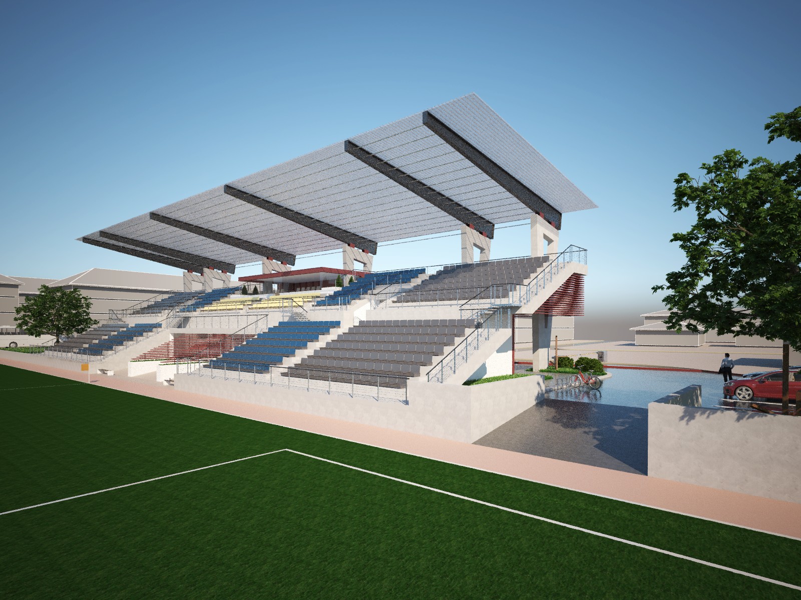 De asemenea, complexul va avea o tribună acoperită cu capacitatea de 800 de locuri, inclusiv cu zona VIP, sub care vor fi amenajate vestiare, sală de conferințe, cabinet medical, birouri sau grupuri sanitare.