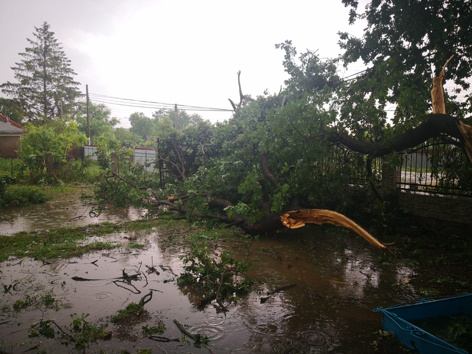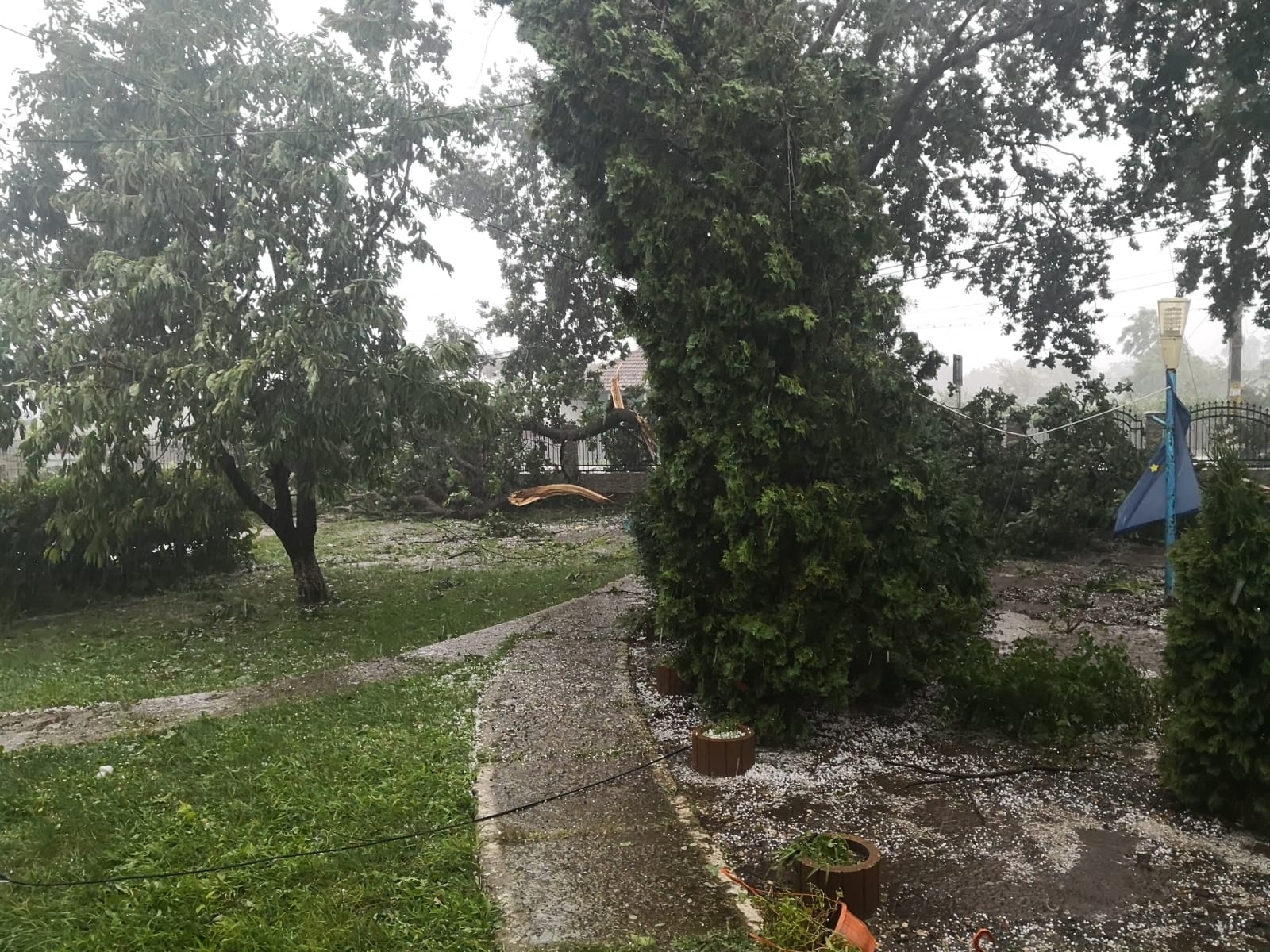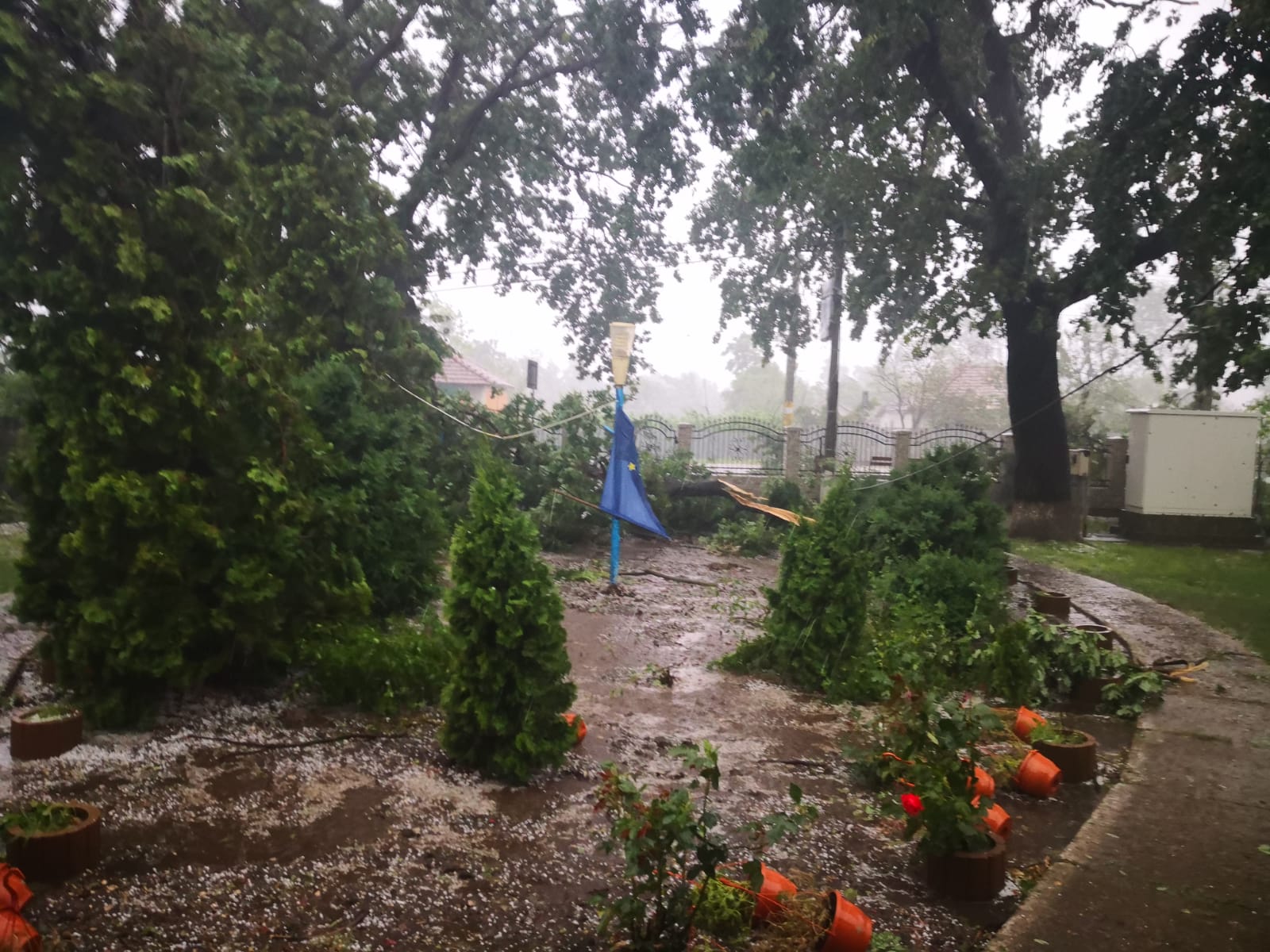 Furtuna a făcut ravagii și la Dângeni. Ploaia torențială de marți după-amiază nu a fost una curată, ci a bătut și grindina, spre supărarea localnicilor.