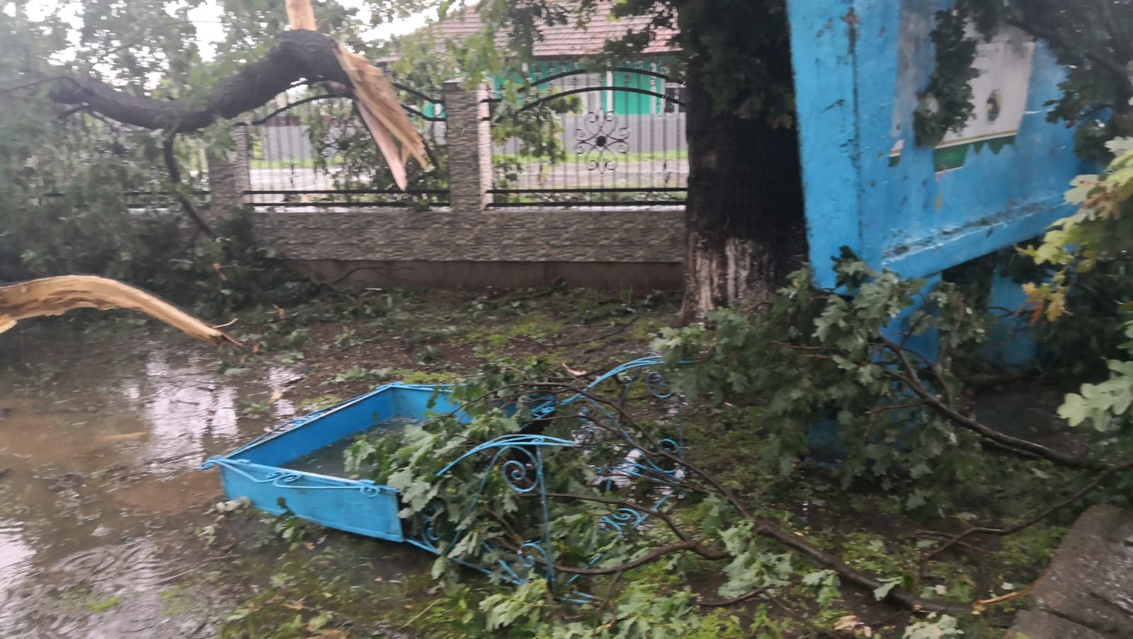 Potrivit martorilor, gheața și vântul a afectat acoperișurile a zeci de case. De asemenea, mai mulți copaci, dar și avizierul din curtea Primăriei din Dângeni au fost smulși de vânt.