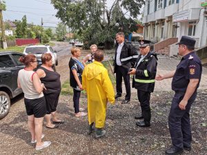 În comuna Dangeni, una dintre cele mai afectate, s-a intervenit pentru degajarea mai multor arbori căzuți pe case, autoturisme sau pe sosea, dar și a mai multor acoperișuri luate de vânt.