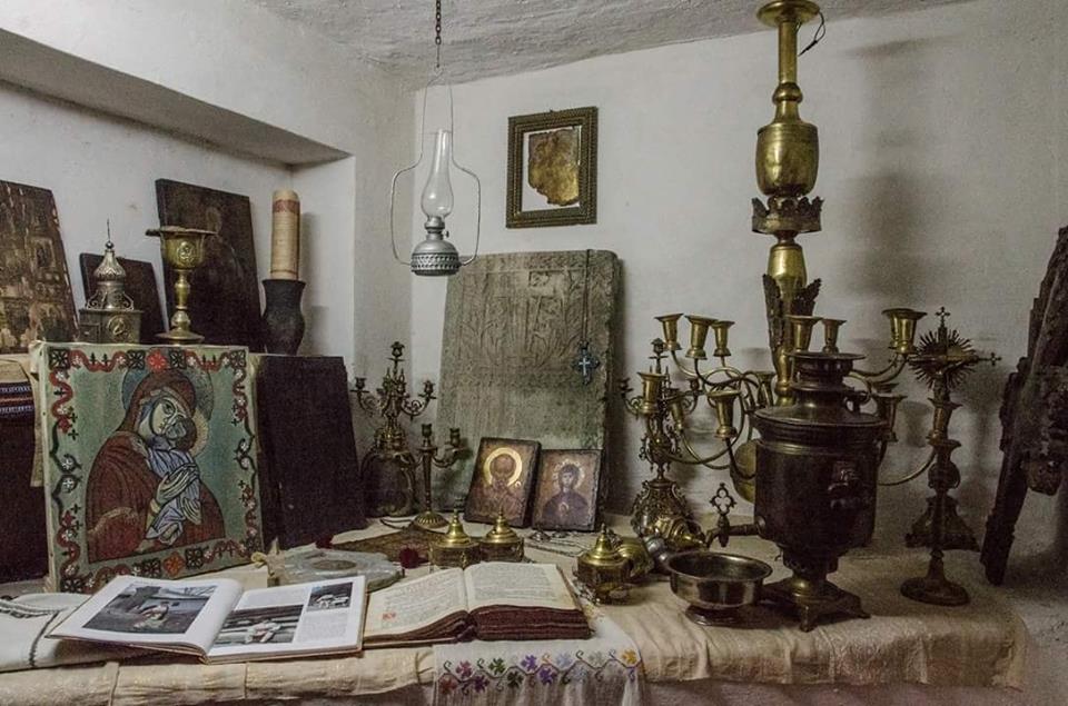 O icoană a Sfântului Nicolae, veche de peste 200 de ani, vase din lut, un ceaslov, tăvi pentru copt pâine, câteva fotografii vechi, câţiva colaci împletiţi, covoare din lână, costume populare, o lampă cu petrol, un fier de călcat cu cărbuni, un leagăn rustic pentru – sunt câteva dintre obiectele care reîntregesc o atmosferă demult apusă, dar păstrată încă în suflete de botoşănenii care au rădăcini în mediul rural. Toate obiectele au fost adunate de-a lungul anilor şi au fiecare o poveste pe care preotul o cunoaște.