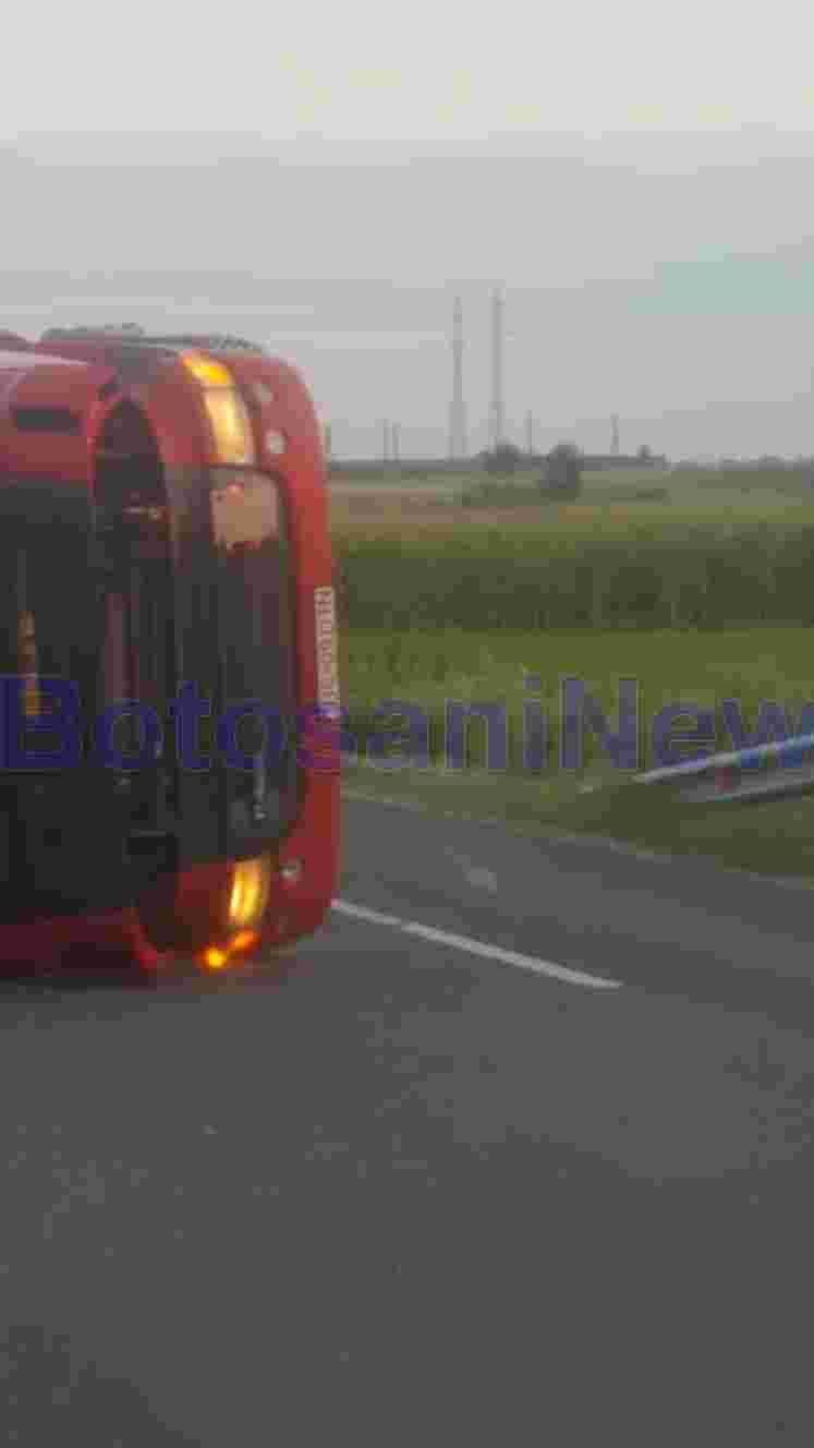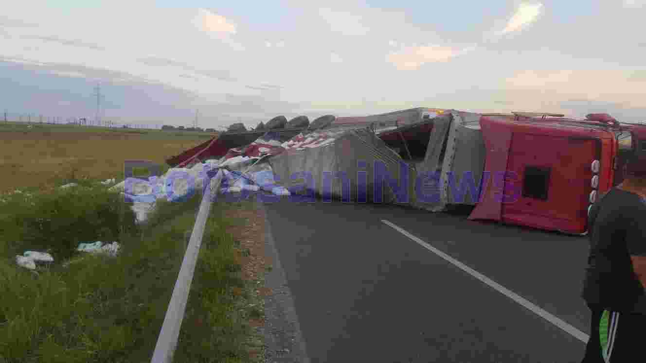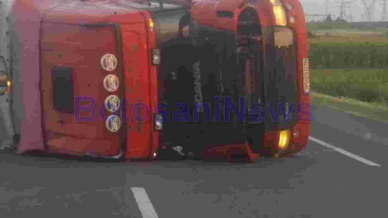Un autotren s-a răsturnat pe suprafaţa carosabilă, iar șoferul a fost rănit ușor.