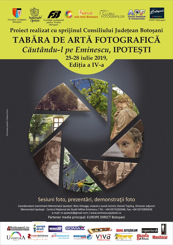 Fotografi din mai multe județe ale țării vor fi prezenți, în perioada 25-28 iulie 2019, la Ipotești pentru a participa la tabăra de artă fotografică, organizată de Memorialul Ipotești – Centrul Național de Studii Mihai Eminescu în parteneriat cu Fundația Judeteană Pentru Tineret Botoșani.