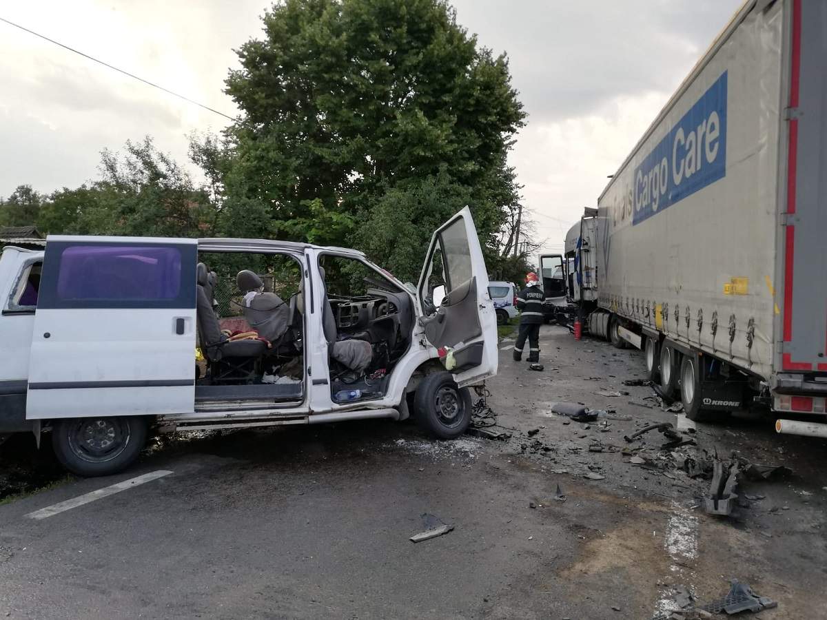 Două persoane au murit, iar alte șapte au fost rănite în urma unui impact frontal produs, joi dimineață, între un TIR şi un microbuz pe E60, în zona localităţii Uileacu de Criş, scrie Bihon.ro.