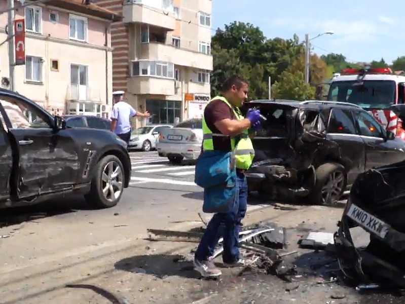 Accidentul s-a produs după ce unul dintre soferi nu ar fi pastrat distanta regulamentara fata de un alt autoturism care se oprise la semafor. Impactul nu a putut fi evitat, soferul intrand in lateral in autoturismul stationat, iar apoi a ricoșat intr-un alt autoturism ce circula regulamentar. In cele din urma, acelasi autoturism a mai acrosat o masina.