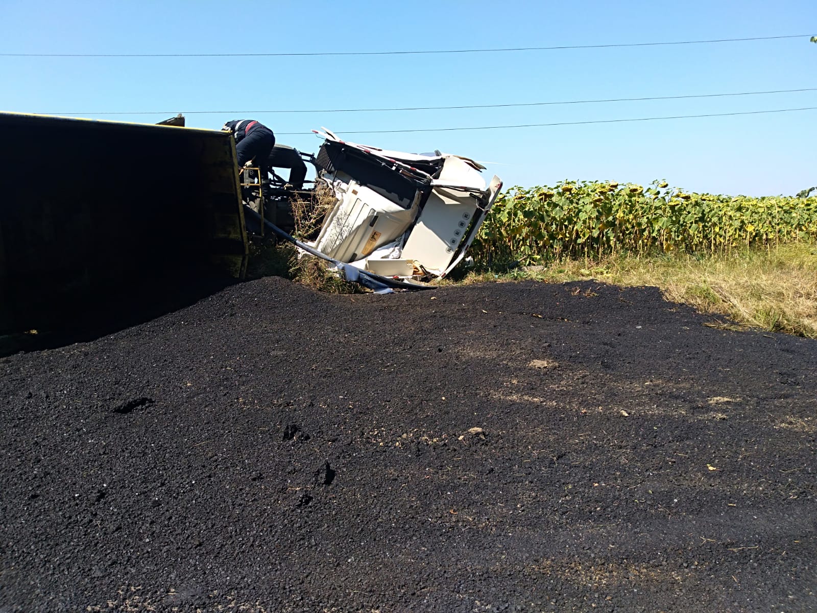Un accident rutier a avut loc, marți după-amiază, pe un drum din județul Botoșani. Un camion încărcat cu bitum s-a răsturnat între localitățile Stânca și Havârna, pe DJ 293.
