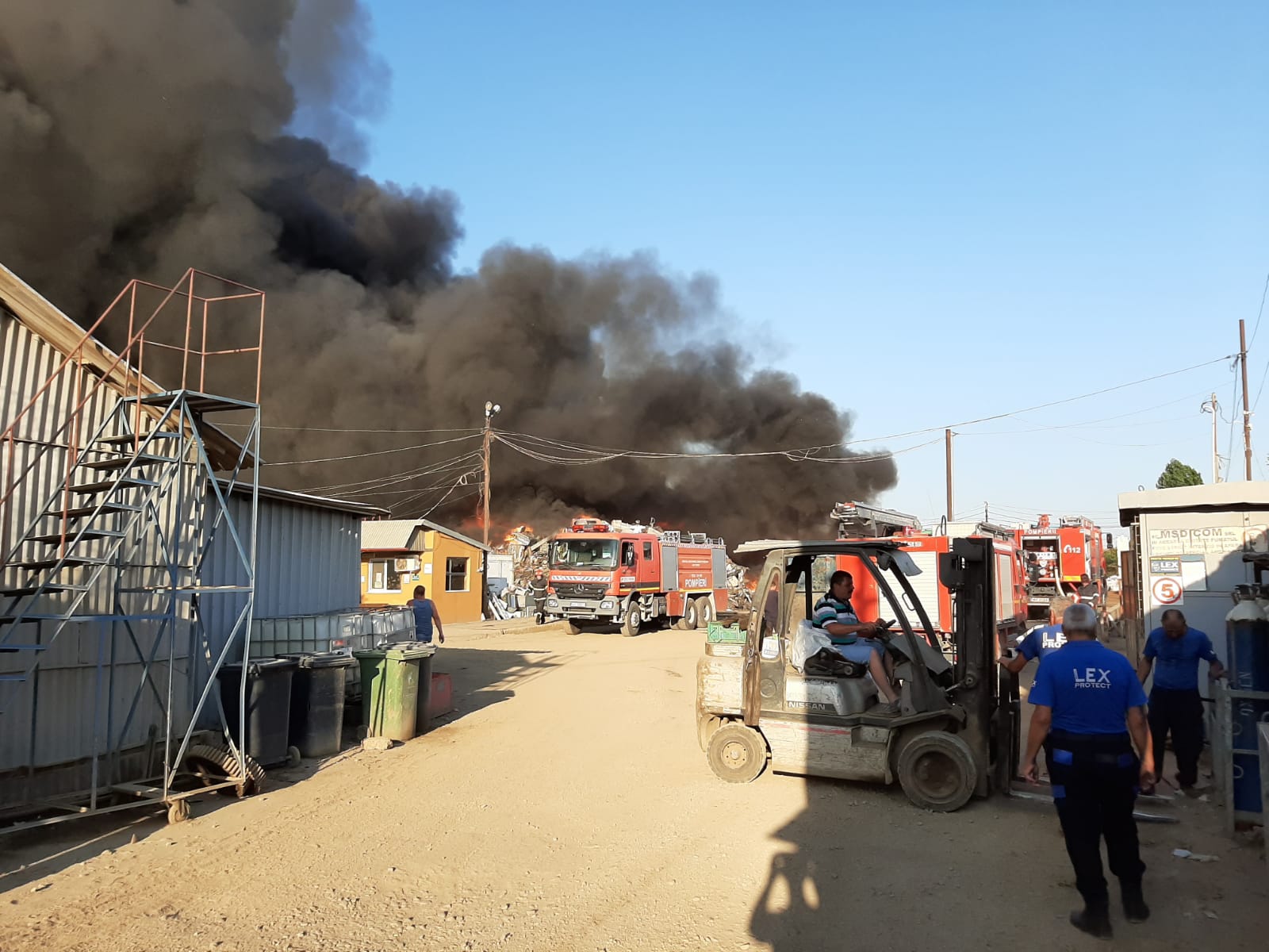 Incendiul se manifesta pe o suprafața de aprox.3000 mp, cu degajari mari de fum. La locul respectiv au ajuns inițial 12 mașini de stingere și un echipaj al serviciului voluntar pentru situatii de urgenta, dar în sprijinul celor de la ISU Buzău au fost dislocate 3 autospeciale de stingere de la ISU Prahova, una de la ISU Ialomița și una de la ISU Vrancea. Pentru eficientizarea misiunii s-a mai suplimentat cu alte 2 mașini de stingere de la ISU BIF.