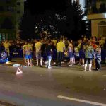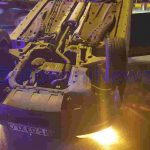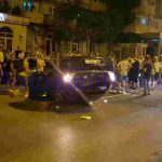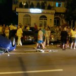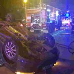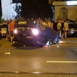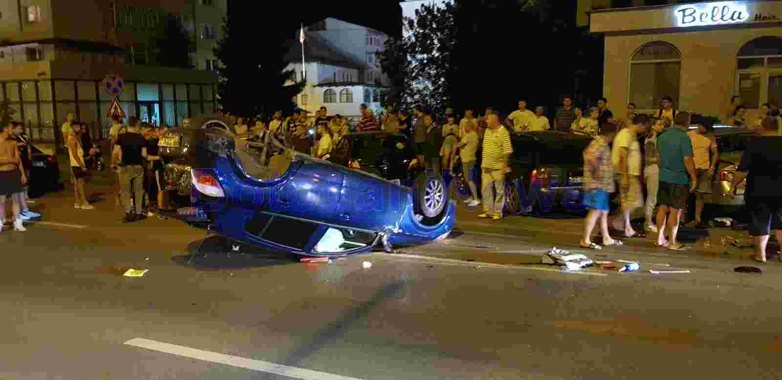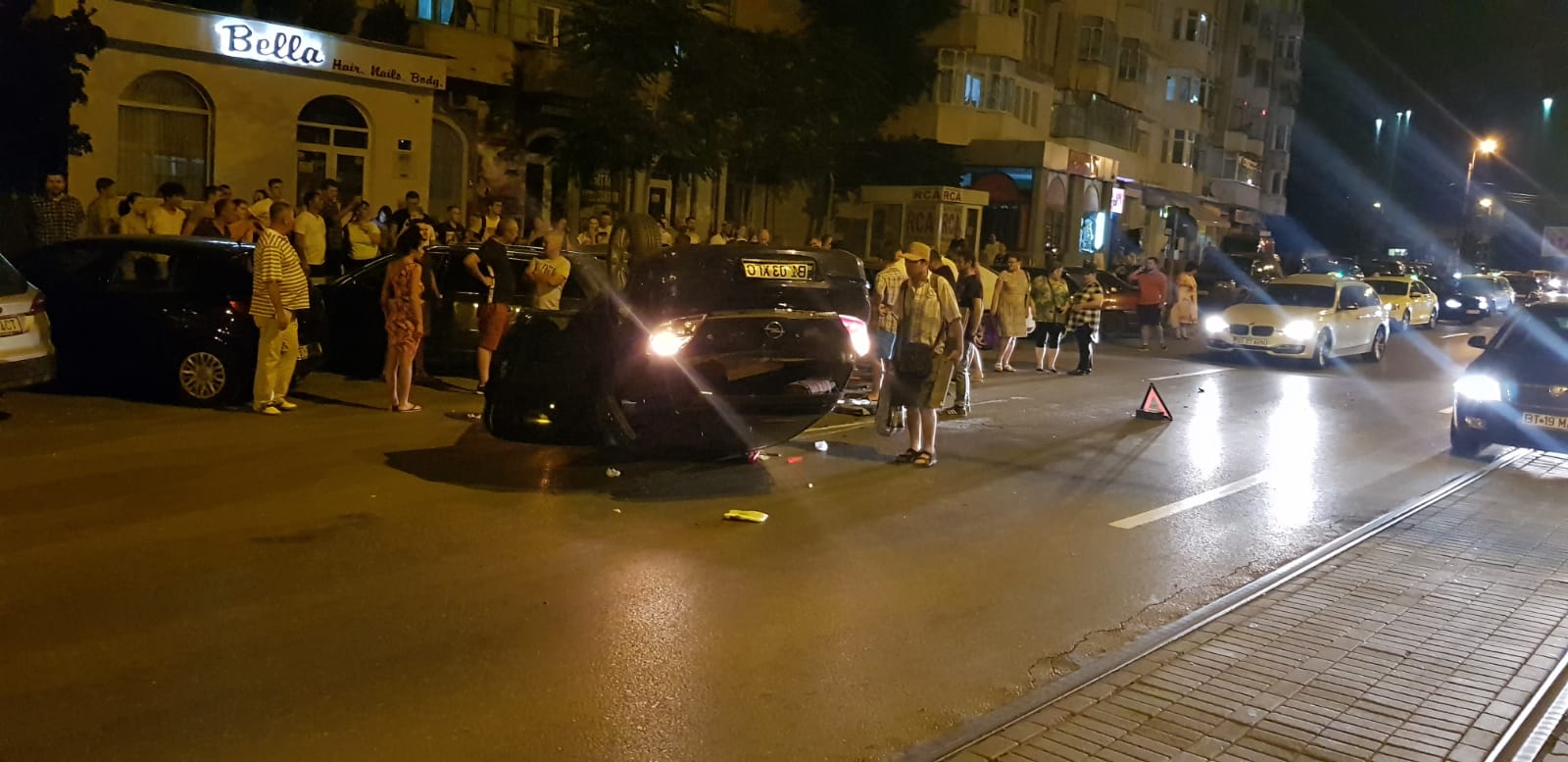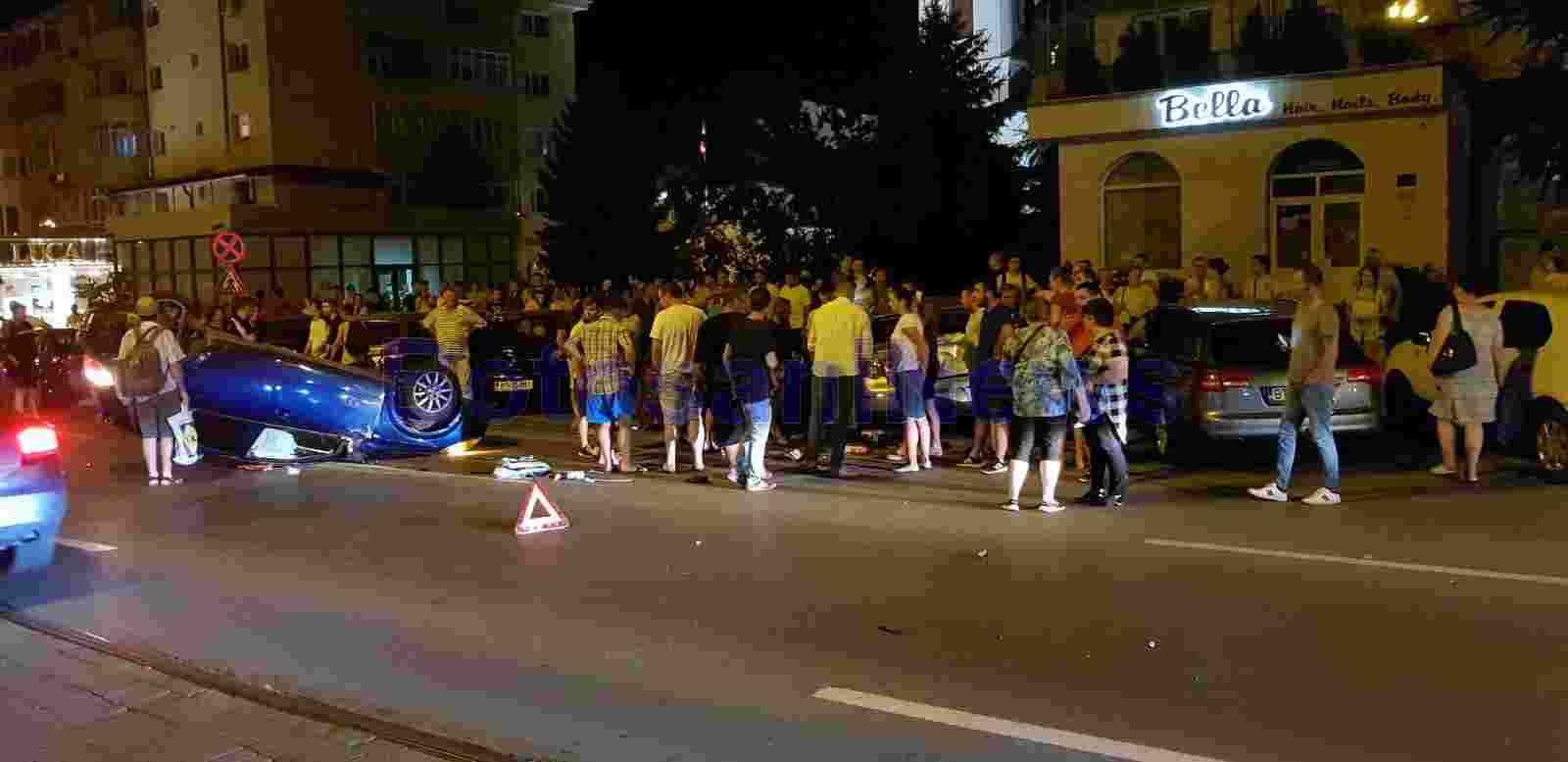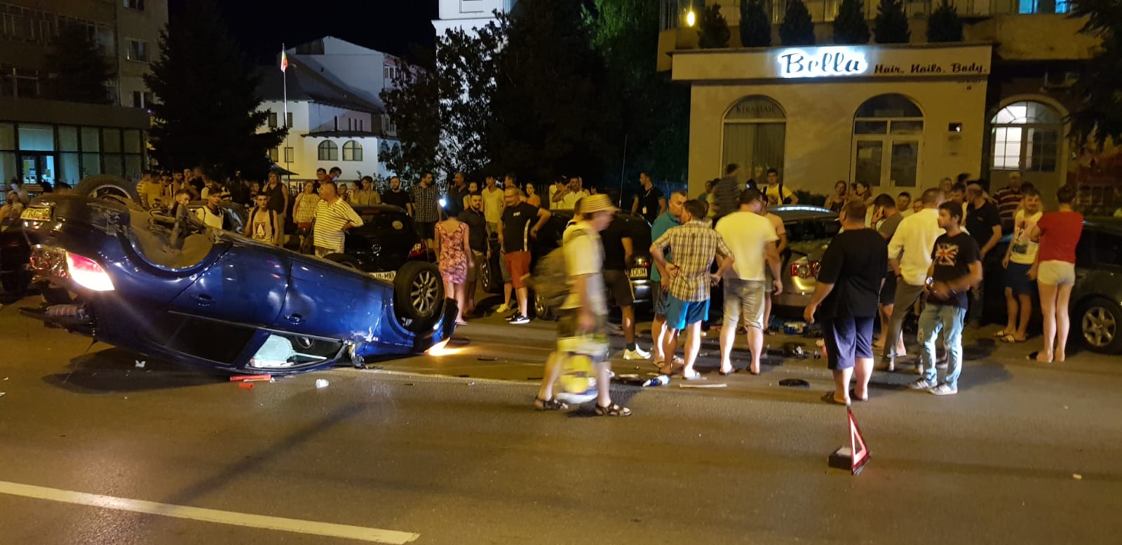 Ulterior, mașina răsturnată a lovit un Volkswagen care era parcat pe Calea Națională. În mașina răsturnată se aflau mai mulți tineri, iar doi dintre ei au fost transportați la spital. La fața locului au ajuns pompieri, ambulanță SMURD, echipaje de poliție.