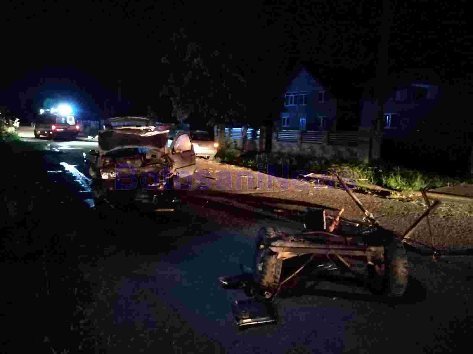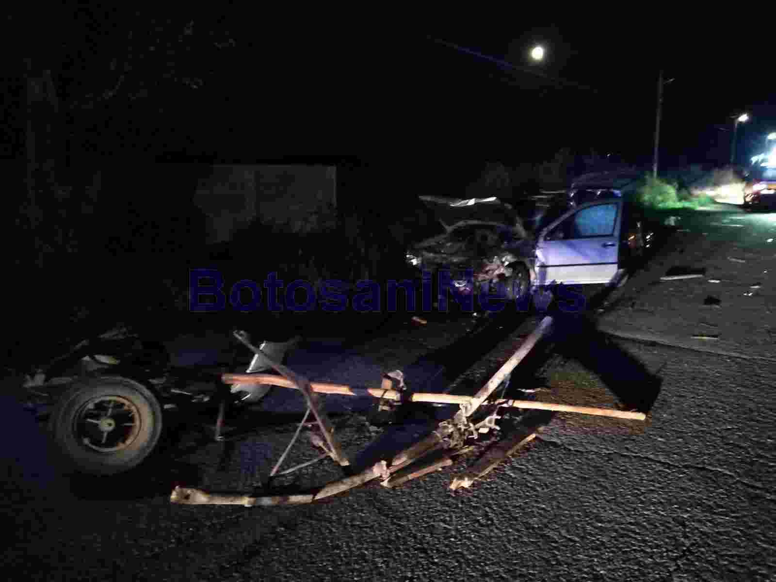Un grav accident rutier a avut loc, în noaptea de vineri spre sâmbătă, pe raza comunei Corni. O căruță, în care se aflau doi soți, a fost pur și simplu spulberată de un autoturism.
