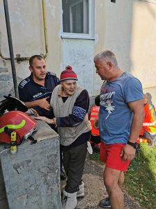 În timp ce evacua bătrânul din casa, a chemat în sprijin și colegii.