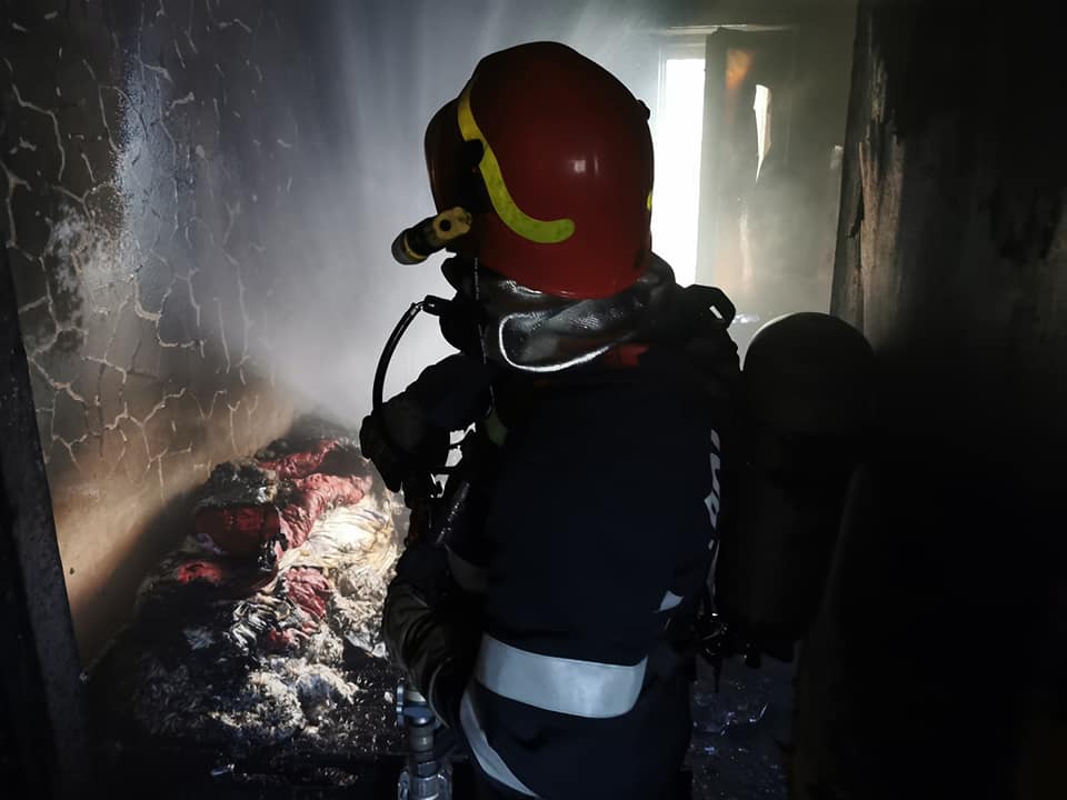 La sosirea forțelor de intervenție, ardeau bunurile dintr o camera, existând pericolul de propagare a flăcărilor la întregul apartament. Un fum dens era pe casa scării, la toate etajele.