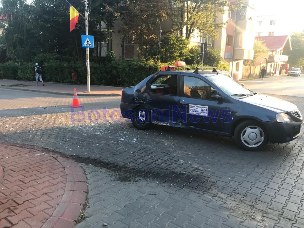 Un accident grav a avut loc, miercuri dimineață, pe Bulevardul Victoriei din municipiul Dorohoi. Un instructor auto și un elev de-al său, care se aflau într-un autoturism tip „Școala”, au fost răniți, după ce mașina acestora a fost lovită violent de un Volksvagen Golf.