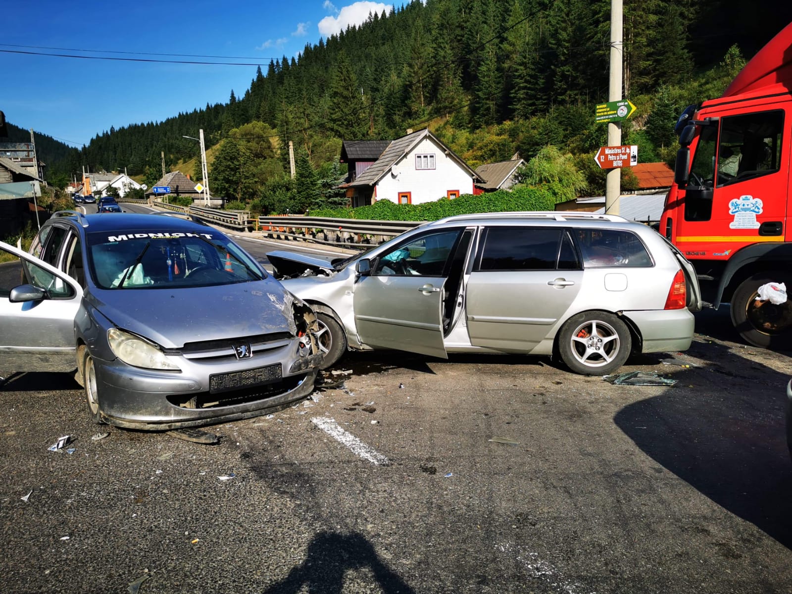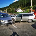 Potrivit martorilor, cele două autoturisme s-au ciocnit, apoi unul a ricoșat în camionetă.
