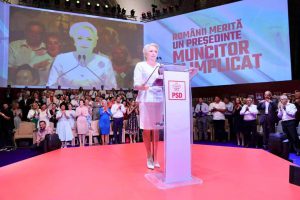 “România trebuie condusă dintre oameni, împreună cu ei, alături de ei”, le-a spus Viorica Dăncilă delegaților de la Congres, care i-au acordat în unanimitate votul pentru candidatura la alegerile prezidențiale.