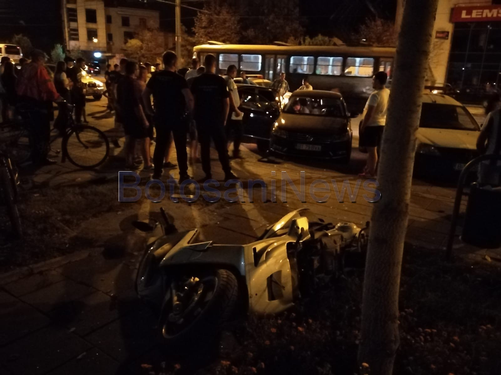Un carambol cu trei mașini și un scuter a avut loc marți noapte, pe Calea Națională din municipiul Botoșani. Un tânăr de 19 ani, șofer începător, a distrus cu mașina două autoturisme parcate și un scuter.