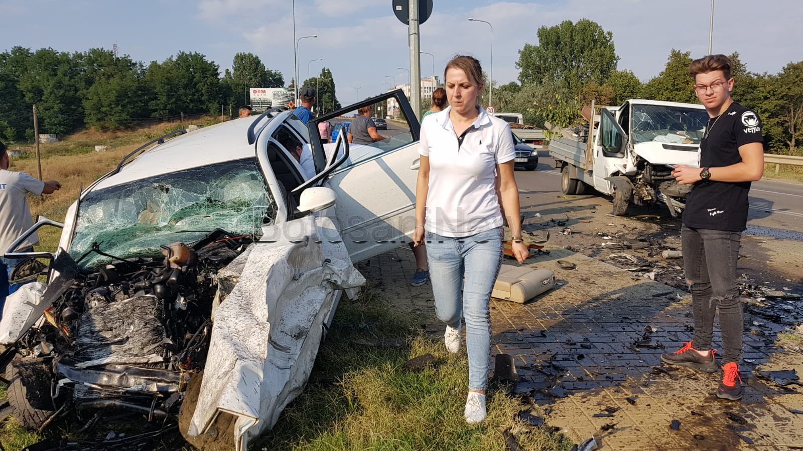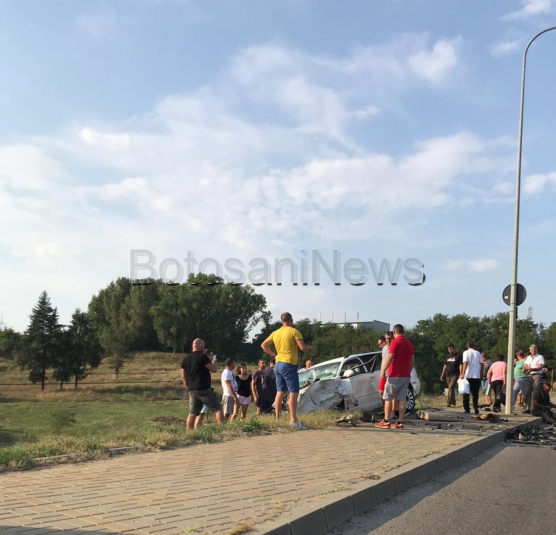 Un grav accident rutier a avut loc sâmbătă seară, la ieșire din municipiul Botoșani, spre Dedeman. Două autoturisme s-au ciocnit, apoi unul a ieșit de pe carosabil.