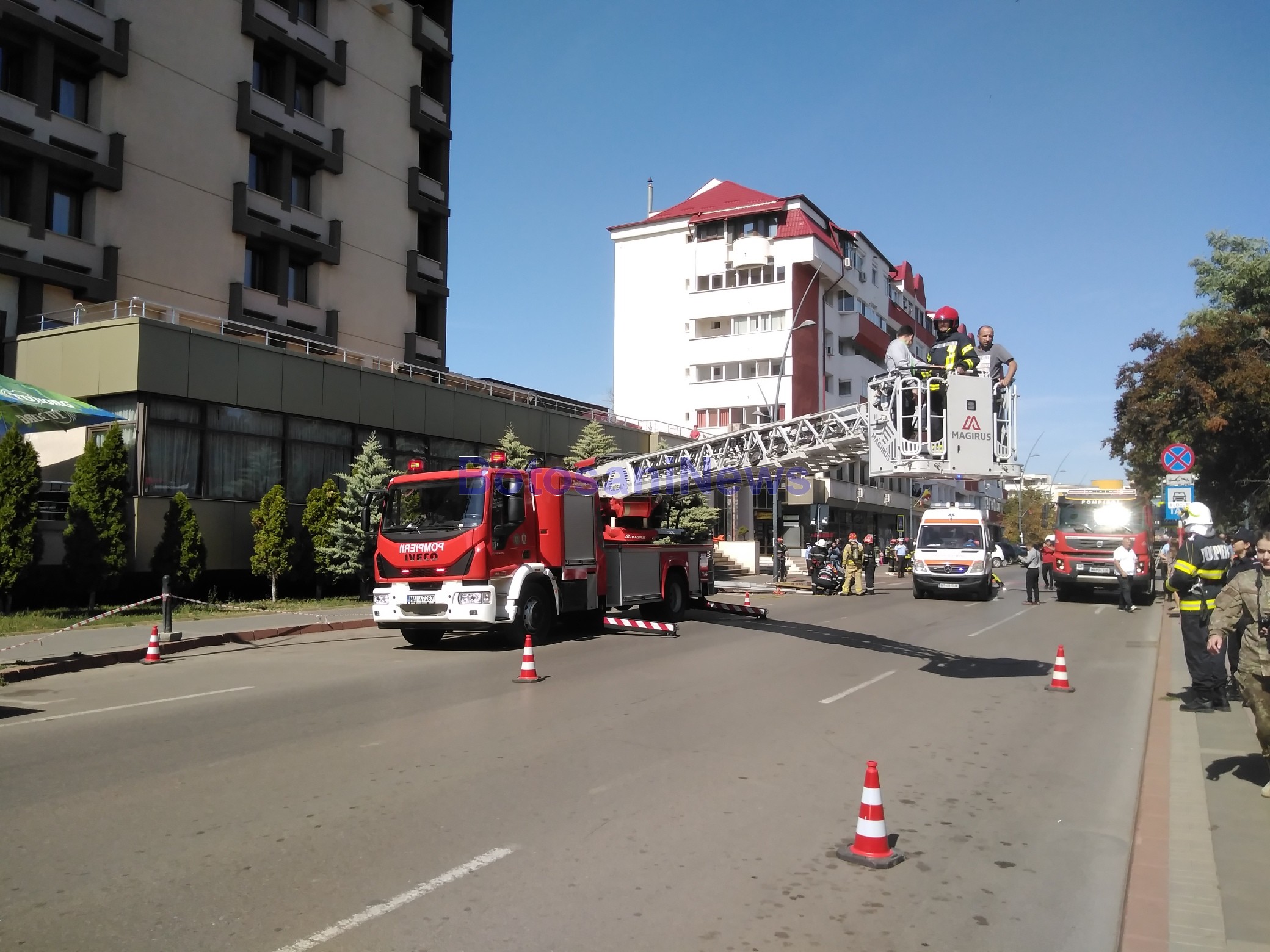 Acestora li s-au alăturat specialiști ai instituțiilor cu atribuții în managementul situațiilor de urgență, la un amplu exercițiu în domeniul situațiilor de urgență desfăşurat la Hotel Rapsodia și Cinema Unirea.