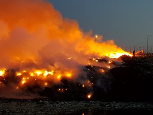 Pompierii botoșăneni au intervenit ore întregi pentru a stinge flăcările de la groapa de gunoi de la Victoria, de la Stăuceni.
