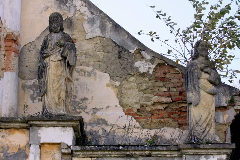Anii trec. Alecu, fiul boierului, prinde drag de Anna Bernescu, o bistrițeancă de religie catolică. Tatăl, boierul, ar fi vrut o legătură cu urmașele unor negustor cu stare, așa cum spunea tradiție, dar Alecu nici nu a vrut să audă. S-a făcut nuntă mare, frumoasă, iar Anna s-a mutat la casele boierești. Nimeni din familie nu i-a cerut să se lepede de a sa credință, din contră! Spre a-i face pe plac, Alecu a decis să ridice un zid de incintă în jurul bisericuței din lemn. L-a decorat cu motive catolice, apoi i-a adăugat și o clopotniță. S-a dat veste la Roma, cele 13 statui în stil baroc (12 apostoli și Iisus Hristos) au venit direct de acolo. De asemenea, au apărut picturi ca la Vatican. Anna avea să piară de tânără, când nu adunase nici 35 de ani. Și copii lor s-au prăpădit de tineri. Alecu nu s-a mai recăsătorit niciodată. Slugile îl vedeau luând un scaun și reculegându-se acolo, între cele două simboluri, unul catolic, altul ortodox. ”O armonizare a creștinismului”, cum spun oamenii locului. ”O îmbinare uluitoare de stiluri. Te-ai fi gândit că iese un kitsch, dar vorbim despre artă curată”, adaugă Dănuț Huțu, director al Direcției Județene de Cultură Botoșani, ”atras” și de dragoni. ”Sunt un element straniu. Se spune că era blazonul familiei, dar este greu de explicat prezența lor”.