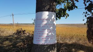 Afișul a fost lipit de un copac de pe marginea drumului care face legătura între Coțușca și Nichiteni și are următorul conținut: