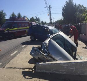 O femeie de 27 de ani, din Dumbrăveni, care era în Skoda, a fost rănită.