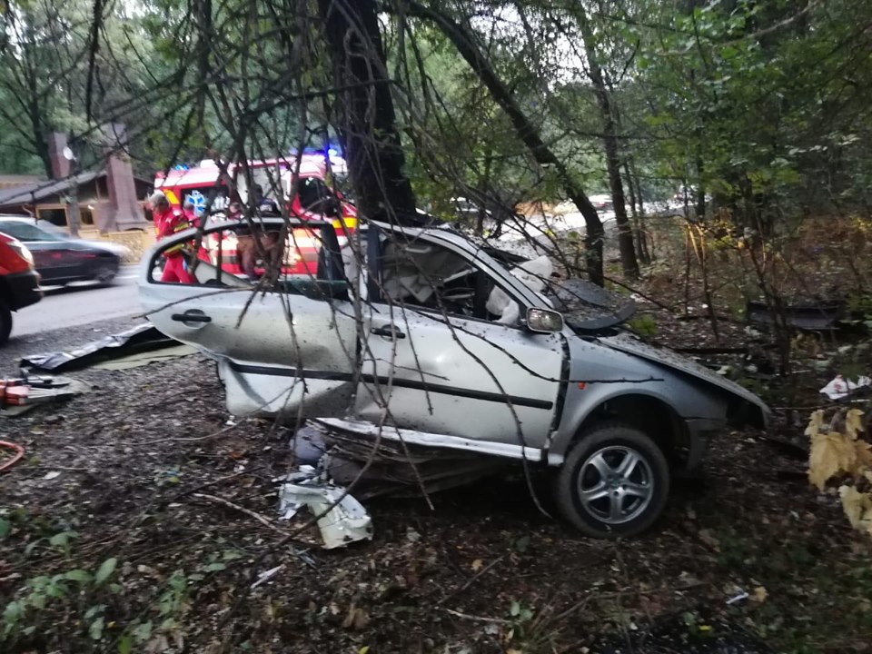 FOTO Accident cumplit! Un tânăr a murit după ce s-a izbit cu mașina într-un copac. Autoturismul s-a rupt în două