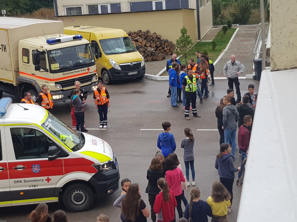 Joi, 26 septembrie 2019, Liceul ”Demostene Botez” Trușești a primit vizita Crucii Roșii Germania, DRK Sonneberg Kreisverband e.V. Echipajul, alcătuit din 12 voluntari și patru autospeciale de urgență, a participat la o acțiune de informare cu privire la tehnica și personalul de urgență. Aceștia au discutat cu elevii despre tehnici de prim-ajutor, logistica în cazul unei catastrofe, intervenții necesare în caz de cutremur, incendii și inundații și au răspuns multitudinilor de întrebări venite din partea elevilor.