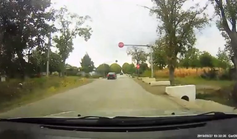 Inconștiență maximă! Un bărbat a trecut cu o viteză amețitoare prin „intersecția morții”. Avea STOP, dar nu a frânat deloc. IMAGINILE au devenit publice