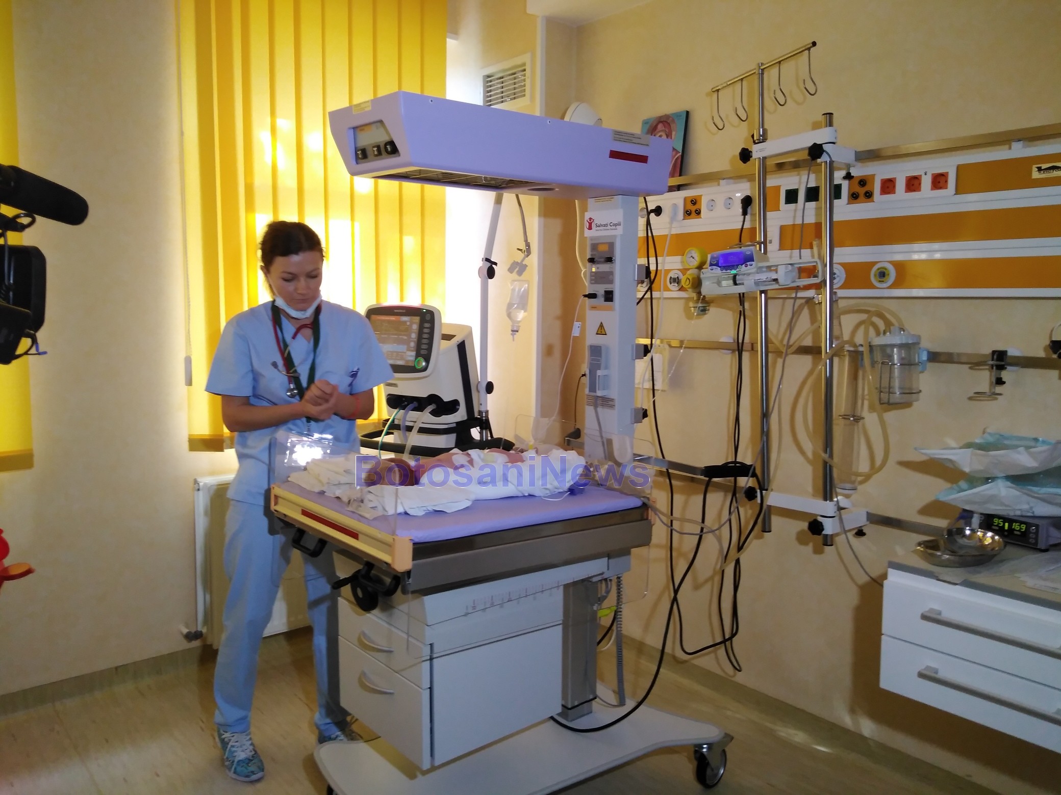 ”În fiecare an, unul din zece copii se naște sub greutate. Un asemenea copil va ocupa un incubator între 10 și 50 de zile. Cel mai mic copil din acest an a cântărit 720 grame. Nu știu dacă vă închipuiți ce înseamnă un copil de 720 grame. Sticla aceasta are 500 grame. E puțin mai mare decât sticla aceasta și plămânii lui sunt mult mai mici decât greutatea lui și ca și prezentare și atunci avem nevoie în permanență de suport respirator, de orice fel de suport. Asta înseamnă multă aparatură. Nu solicităm aparatură pentru că avem nevoie de mobilier frumos pe care să-l folosim în secție, ci pentru chiar avem nevoie. Anul acesta, am avut 350 de copii la terapie intensivă și au necesitat îngrijiri speciale”, a declarat medicul Carmen Zaboloteanu în cadrul unei întâlniri care a avut loc cu reprezentantii Organizației Salvați Copiii, cei care au donat aparatură de 12.000 euro Maternității Botoșani.