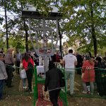 Zeci de credincioși au luat parte la acest moment. Procesiunea a început de la Biserica Acoperământul Maicii Domnului, al cărei preot paroh este Florin Istrate, până la troița din centrul localității.