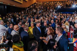 În fața Casei de Cultură, unde a avut loc Adunarea Regională a filialelor PNL din Nord-Vest, președintele Klaus Iohannis a fost întâmpinat de numeroși clujeni. Aceștia i-au solicitat autografe pe cartea sa cea mai recentă – „EU.RO – Un dialog deschis despre Europa”, au dat mâna cu șeful statului sau au schimbat câteva cuvinte cu acesta. Klaus Iohannis, însoțit de președintele PNL, Ludovic Orban, de primarul din Cluj-Napoca, Emil Boc, și de alți lideri liberali, și-a făcut, cu greu, drum prin mulțime.