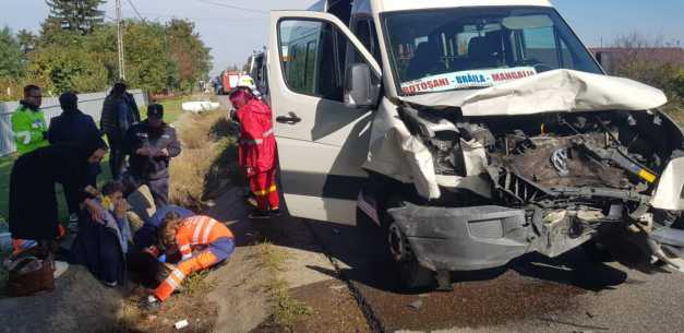 Un microbuz din Botoșani a fost implicat într-un grav accident rutier la Bacău. Microbuzul s-a ciocnit cu o mașină pe DN 2( E85) Bacău- Roman, în satul Dumbrava.