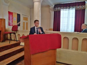 Prezent la întâlnire, președintele Consiliului Județean, Costică Macaleți, a cerut organizatorilor, după ce i-a felicitat pe profesori, ca înaintea acestor întâlniri să se cânte Imnul Românie.