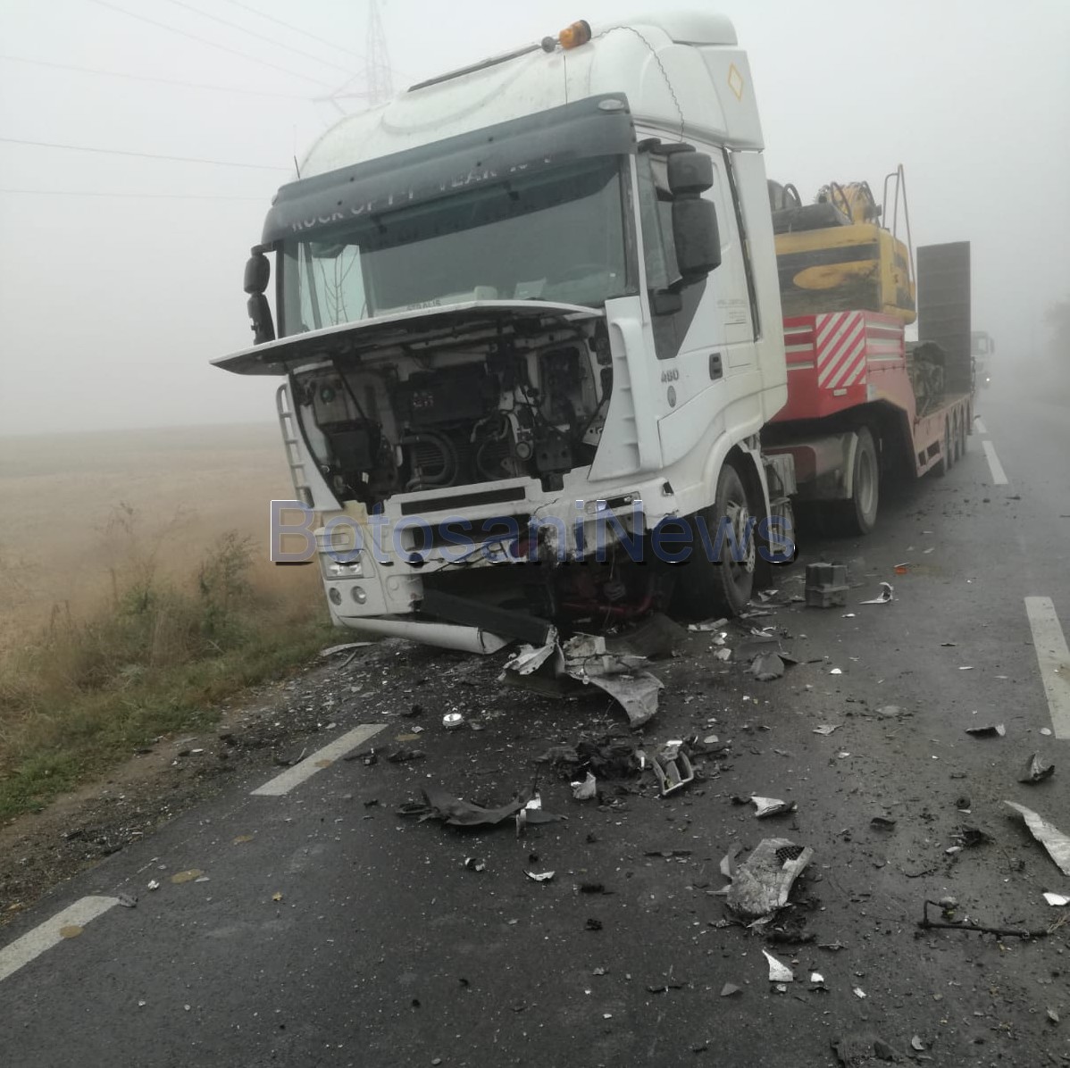 FOTO Doi soți răniți într-un accident la ieșire din Dorohoi! Impact violent între un autoturism și un camion (UPDATE)