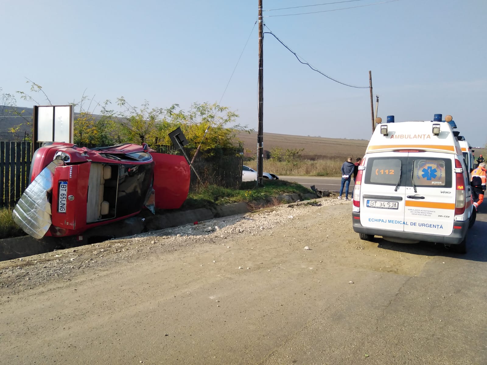 Un accident rutier cu trei răniți a avut loc sâmbătă, în județul Botoșani, la Roșiori. Doi adulți și un copil au suferit leziuni după impactul dintre un VW și un Audi.