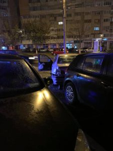 Șoferul care a produs accidentul cu patru mașini, luni seară, în municipiul Botoșani, are 19 ani. Tânărul circula cu un autoturism, iar în față la Romarta, nu a adaptat viteza, a pierdut controlul volanului și a intrat în trei mașini parcate.