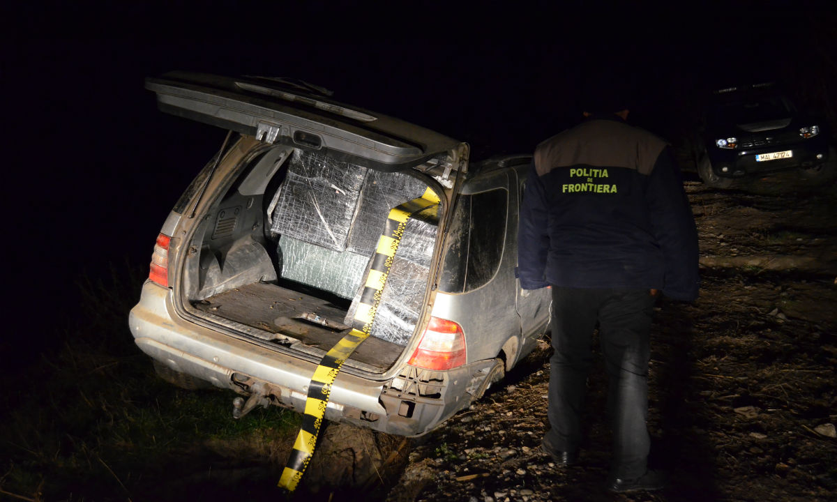 Imediat, polițiștii s-au deplasat la faţa locului, unde au reuşit reţinerea autoturismului în care se aflau mai multe colete cu ţigări, iar în urma cercetării zonei, în imediata apropiere a frontierei, au mai descoperit două colete cu țigări, care au fost ridicate în vederea confiscării.