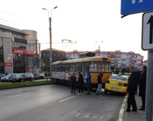 Din primele informații, nu au fost victime, dar persoanele din tramvai și taxi au tras o sperietură teribilă.